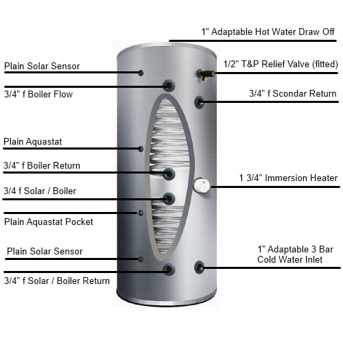 Bojler Cyclone byl navržen s ohledem na aplikace v solárních systémech. Z tohoto důvodu je vybaven solárním výměníkem, který umožňuje maximální teplotu přenosu sluneční energie z solárních panelů do vody v bojleru. Bojler Cyclone je připraven na práci s různými typy solárních systémů dostupných na trhu takovým způsobem, aby efektivně a bezpečně pro životní prostředí dodal teplou užitkovou vodu. Dolní výměník slouží k připojení solárního systému. Další zdroj tepla (např. kotel) připojíme k hornímu výměníku.