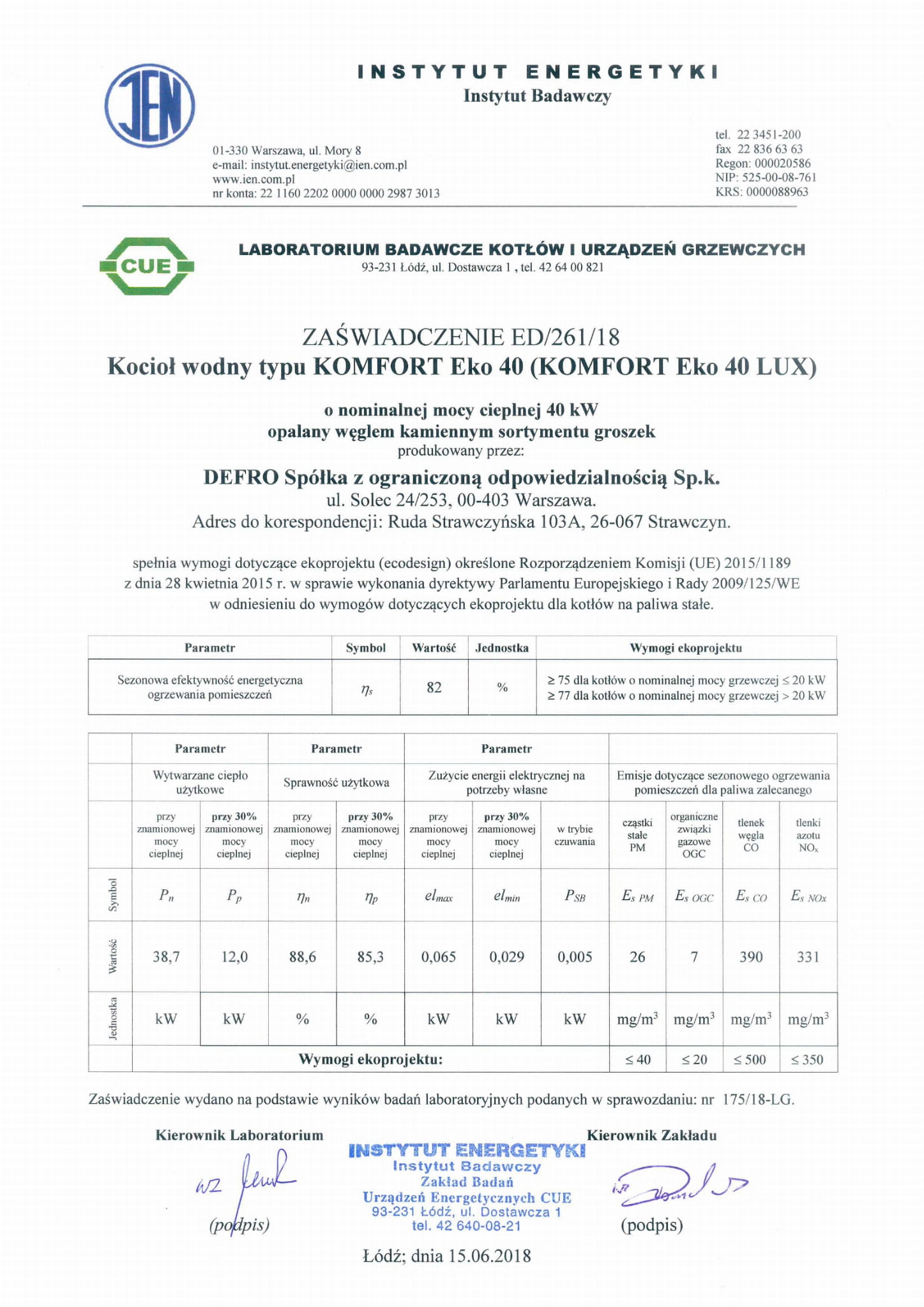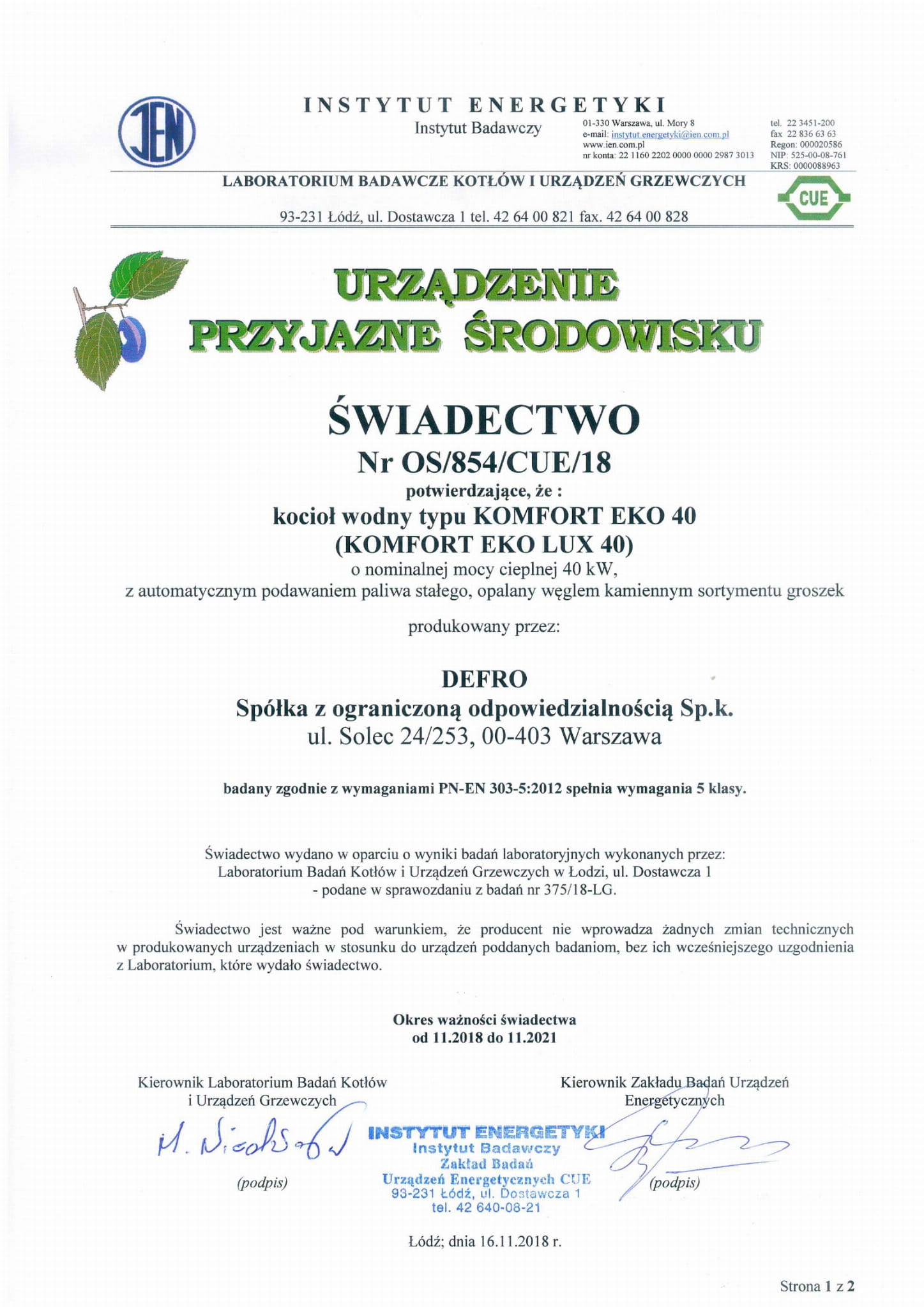 Kotle splňují požadavky na energetiku a emise třídy 5 normy PN EN 303-5:2012 a mají certifikát Ecodesign.