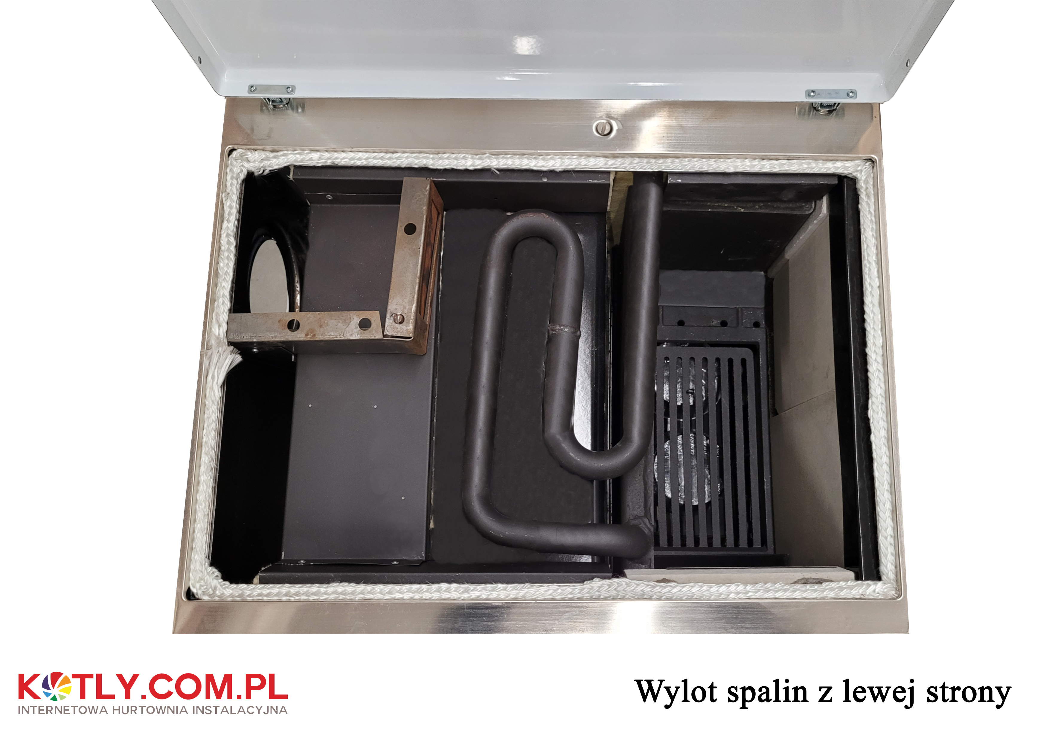 Zkontrolujte, na které straně by měl být výstup spalin do komína:Stojíte-li čelem k peci, měli byste si vybrat, na které straně má být výstup spalin do komína.