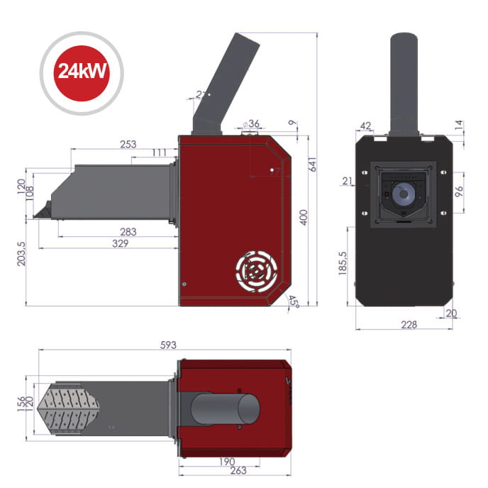 Palnik na pelety Orleco 24kW z podajnikiem 2m i regulatorem