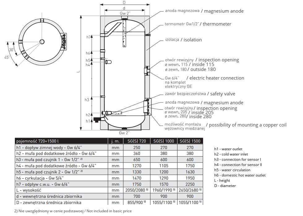Svislé smaltované nádrže teplé vody Galmet SG(S) se používají na skladování teplé užitkové vody. Je možné nainstalovat elektrický topný prvek. Dlouhodobou životnost produktu zaručuje použití hořčíkové anody a keramické emalie pálené při teplotě 850 stupňů Celsia. Izolace je vyrobena z polyuretanové pěny (100-1000) a neodulu (700-1500). Nádrž byla umístěna do pouzdra typu skay nebo fólie PVC.
