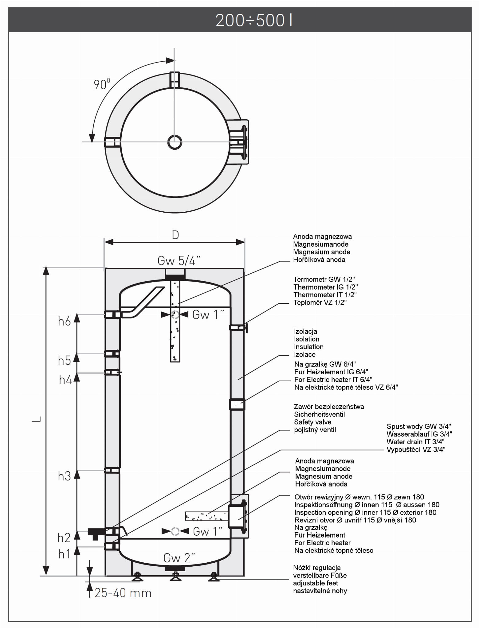 h2 - přítok studené vody - Gw 1” mm 210 210 240 240