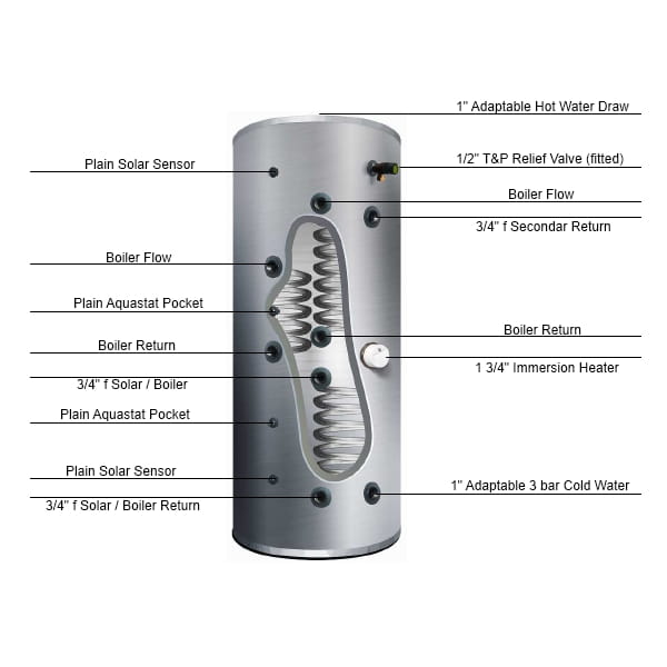 Brauchwasserspeicher Cyclone 200 L ErP C aus Edelstahl mit 3 Heizschlangen