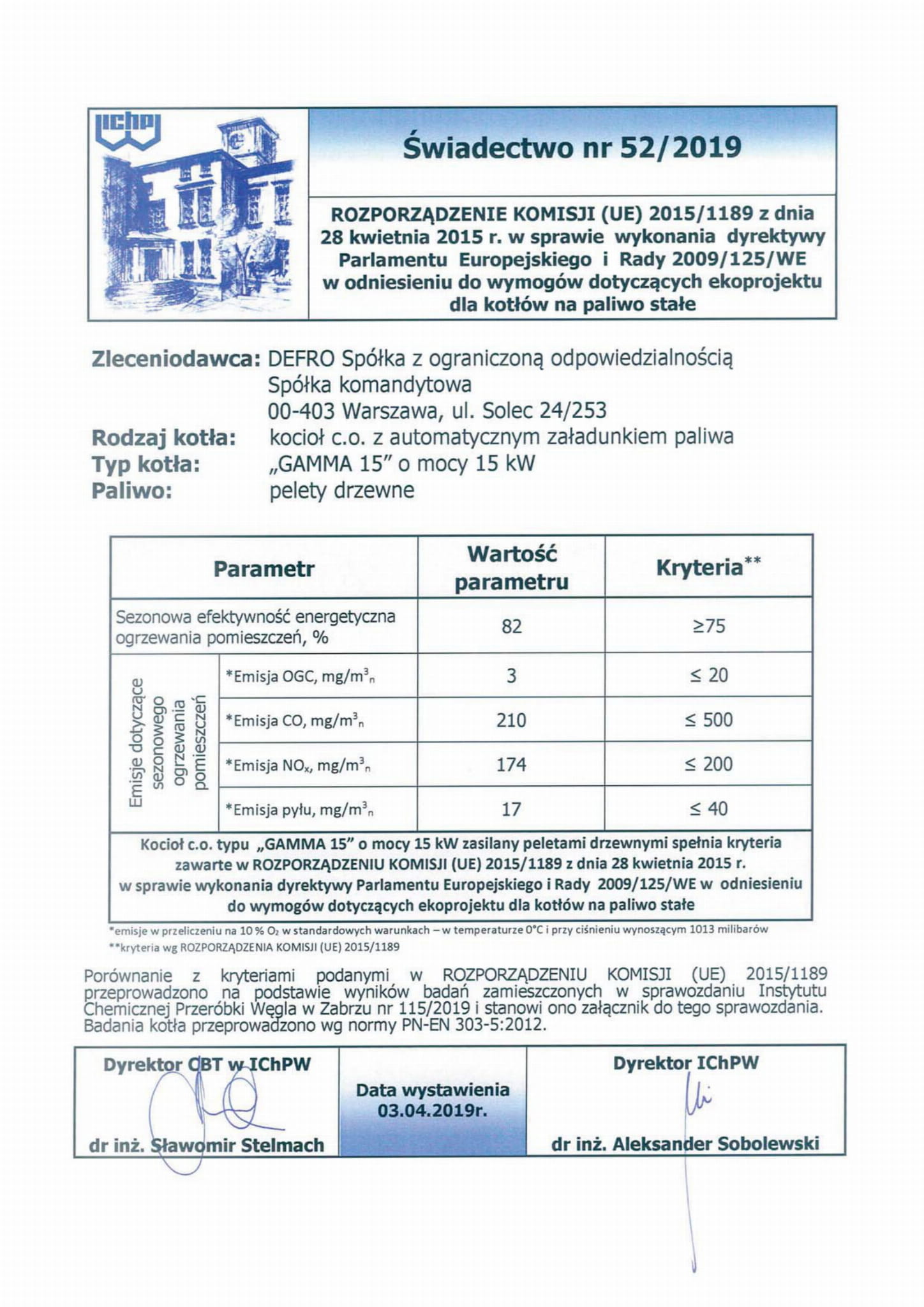 DEFRO GAMMA ist ein Kessel, der in Zentralheizungsanlagen montiert wird. Dieser Kessel verfügt über die Emissionsklasse 5 gemäß der Norm PN EN 303-5:2012 sowie ein ECODESIGN-Zertifikat (ecodesign). Der Besitz dieses Zertifikats und der Emissionsklasse 5 ermöglicht die Beantragung von Zuschüssen für Kauf und Montage. Bei dem Herstellungsprozess wurde ein Pelletbrenner verwendet, der eine Selbstreinigungsfunktion sowie ein System zur automatischen Zündung des Brennstoffs im Standard hat. Der geräumige Brennstofftank ermöglicht einen Betrieb ohne Nachfüllen von Pellets über mehrere Tage, wofür die Verwendung von Keramikkatalysatoren beiträgt, die den Verbrennungsprozess stabilisieren. Der Wärmewechsler wurde aus hochwertigem Kesselspeicherstahl gefertigt. Die Form des Wärmewechslers gewährleistet hohe Effizienz und Reinigungsfreundlichkeit. Aufgrund seiner innovativen Struktur wurde er mit der Möglichkeit ausgestattet, den Brennstofftank auf die andere Seite zu verlegen. Er verfügt auch über einen ADAPTIVE CONTROL-Regler, der eine Regulierung des Kesselbetriebs auf der Grundlage des Luftdurchsatzes durch den Wärmewechsler ermöglicht. Er steuert auch 4 Umwälzpumpen für Heizung, Warmwasser und Ventil, die Steuerung eines Mischventils, die Anzeige und Änderung der Parameter des Hauptreglers online.