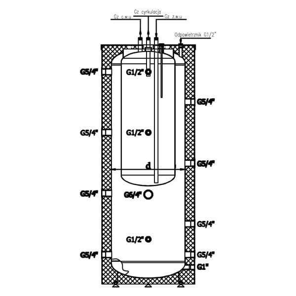 Der Speicher Kumulo ist ein Gerät, das in einem Gerät einen Puffer für die Zentralheizung und einen Warmwasserwärmetauscher kombiniert. Anstelle von zwei Geräten wird ein kombinierter Speicher installiert, der Wärme aus mehreren Quellen speichert. Die Konstruktion vom Typ „Speicher im Speicher" ermöglicht einen freien Wärmeaustausch zwischen den Systemen Warmwasser und Heizung. Das heiße Wasser, das den Heizkreislauf speist, gibt Wärme an den Warmwasserspeicher ab, was es ermöglicht, die richtige Warmwassertemperatur zu erreichen.