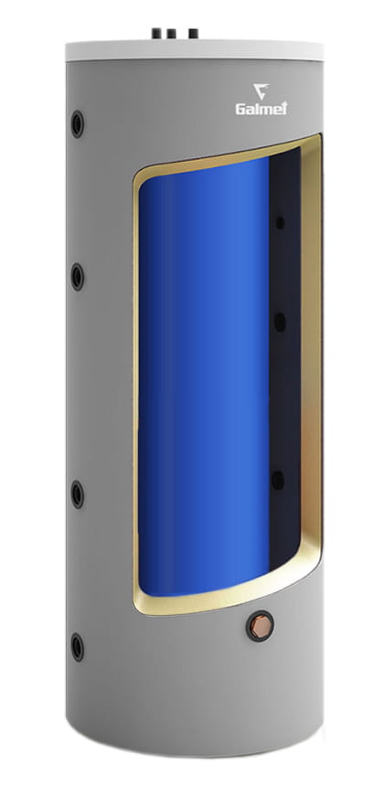 Der Behälter Kumulo ist eine Einrichtung, die in einem Gerät einen Puffer der Zentralheizung und einen Warmwasserbereitungswärmetauscher vereinigt. Anstelle von zwei Geräten wird ein kombinierter Speicherbehälter installiert, der Wärme aus mehreren Quellen speichert. Die Konstruktion vom Typ "Behälter im Behälter" ermöglicht den freien Wärmewechsel zwischen den Systemen Warmwasser und Zentralheizung. Das heiße Wasser, das den Zentralheizungskreislauf speist, gibt Wärme an den Warmwasserspeicher ab, was eine angemessene Temperatur des Brauchwassers ermöglicht.