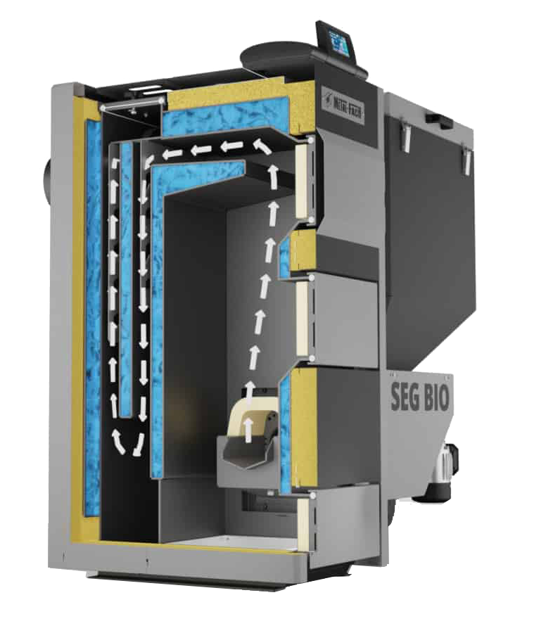 SEG BIO ist ein Kessel, der gemäß der Norm PN EN 303-5:2012 über die Klasse 5 verfügt und zuverlässige technologische und konstruktive Lösungen nutzt, die ihn zu einer äußerst effizienten und bewährten Wärmequelle machen.