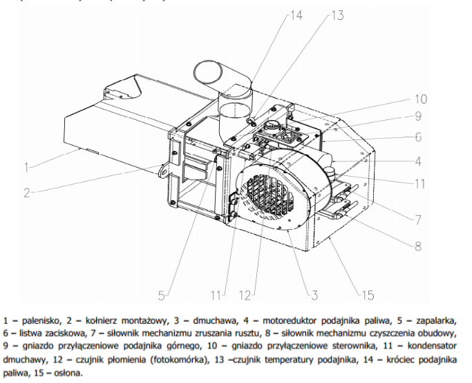 Der Pelletbrenner Moderator mit der Leistung von 10-30 kW. Das Gerät verfügt über eine ganze Reihe von innovativen Lösungen. Das Ziel des Produzenten war es die Konstruktion und die Produzierung eines wartungsfreien, zuverlässigen und nich teuren Brenner der Pellets verschiedener Qualität verbrennen kann.