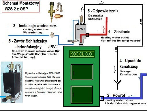 Sicherheitswärmetauscher WZS-2 für Kessel bis 35kW - Regulus JBV