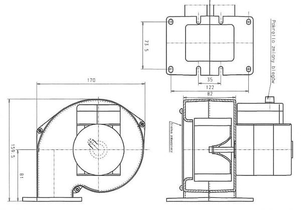 Der Ventilator dient zur Luftzufuhr in die Feuerungen der Heizungskessel. Er kann auch für algemeine Belüftung der Räume und wissenschaftlichen Geräten verwendet werden. Die Arbeitstemperatur des Ventilator liegt im Bereich von 0 bis 40 °C.