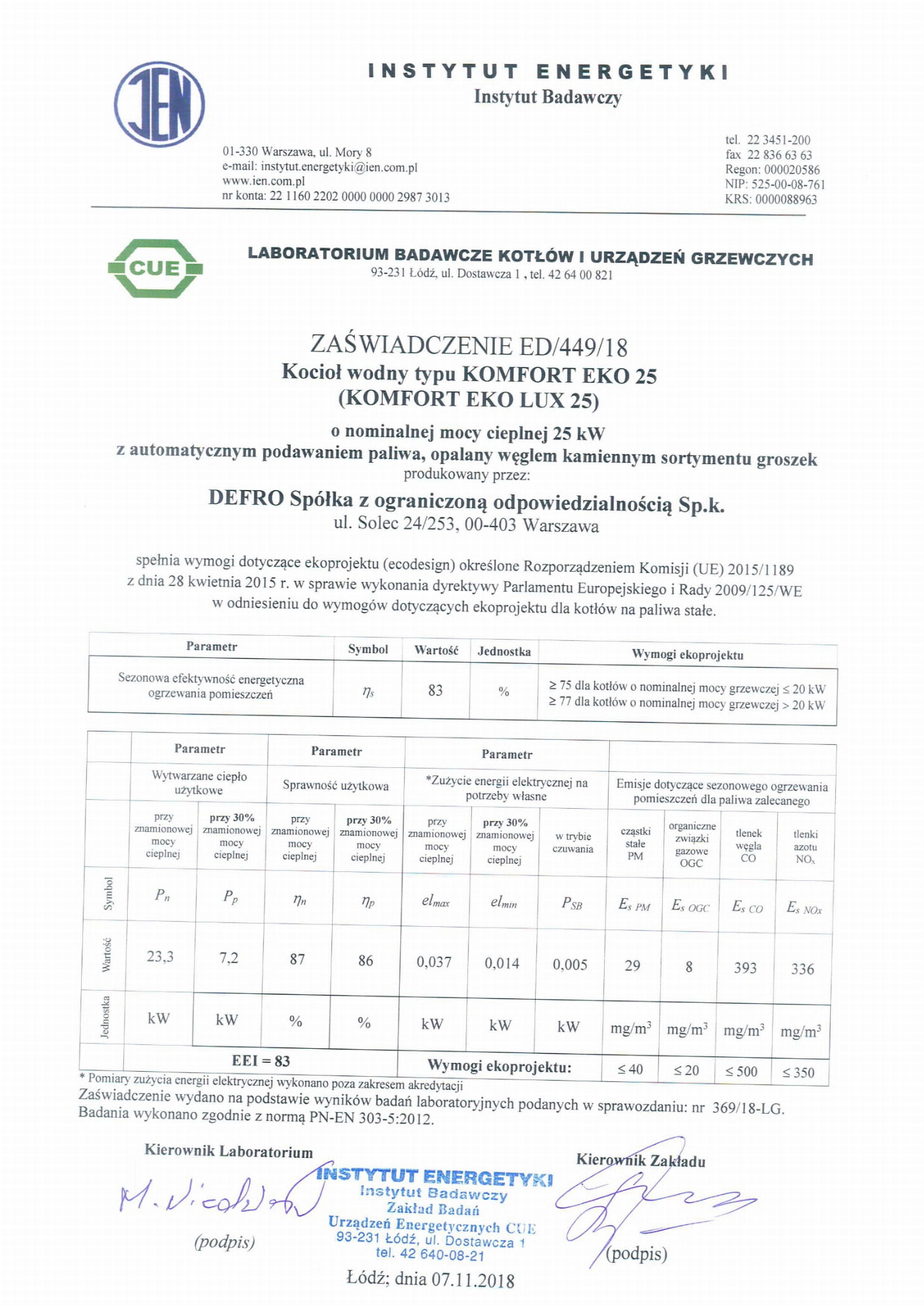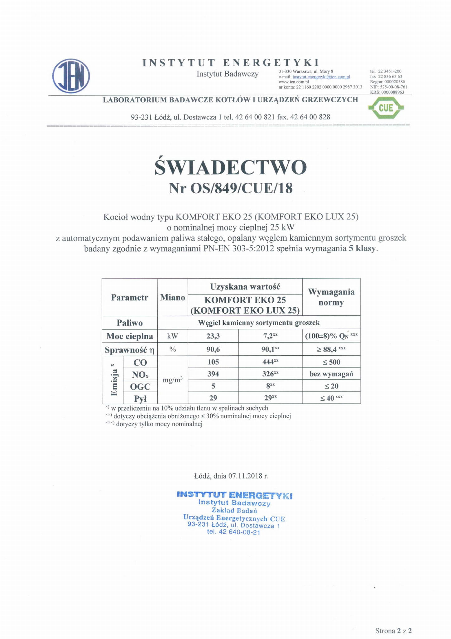 Boilers meet the energy and emission requirements of class 5 of the standard PN EN 303-5:2012 and have an Ecodesign Certificate.
