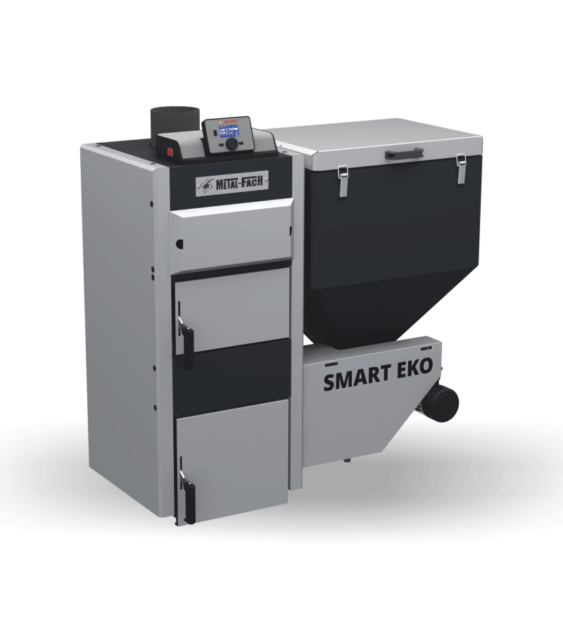 Metal-Fach Smart EKO is a boiler which automatically burns peacoal, pelet, culm and also is equipped with a steel grate, where manually we can burn coal and wood. This kind of construction allow to heat the building while the absence of electricity or fuel and also we can heat domestic hot water during the summer.