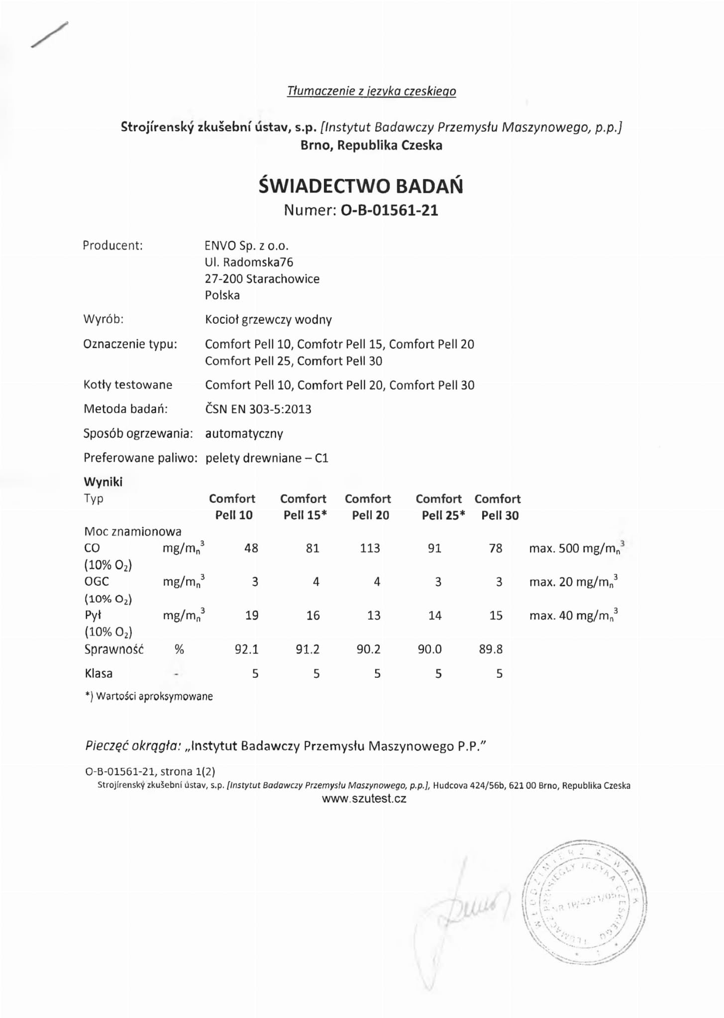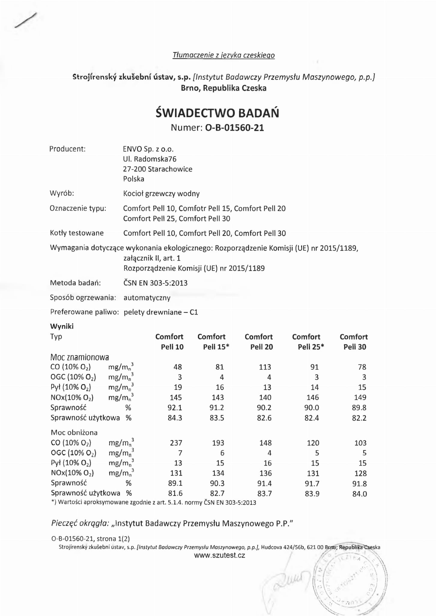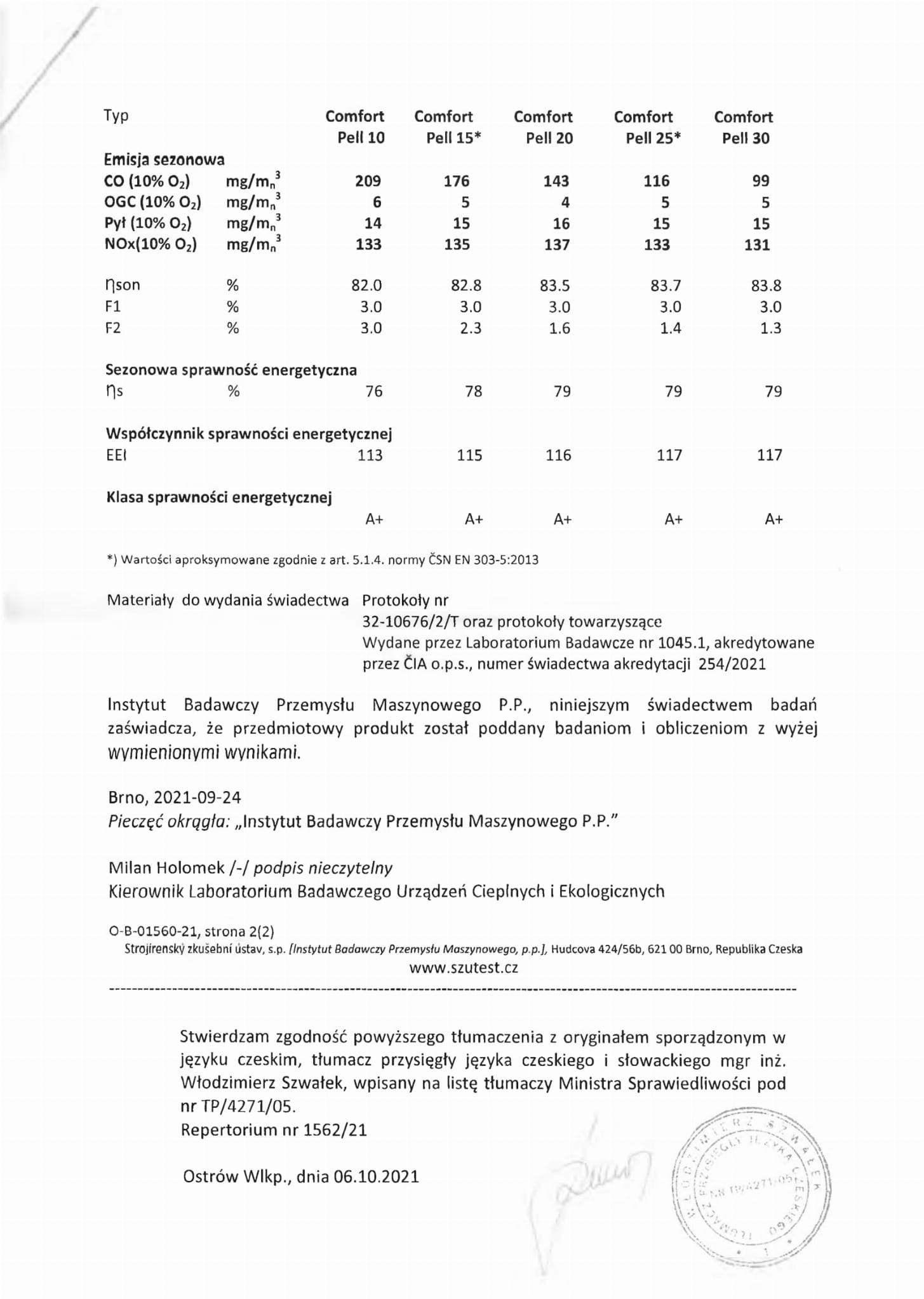 Thermal efficiency according to PN-EN 303-5:2012 (nom. power – min. power) [%] 92.1-84.3 91.2-82.6 90.2-82.6 90-82.4 89.8-82.2