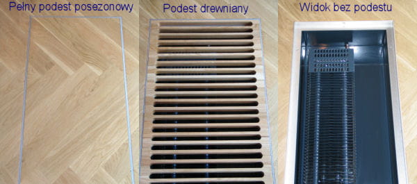 Placed in the floor recesses, the radiators offer a perfect protection for terrace doors, balcony doors, under large glazed surfaces, in winter gardens, entrance enclosures, lacings, etc., everywhere where there is a need for effective protecion against the cold.