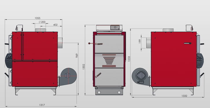 The Orligno 600 boiler can combust wood of various granulation from sawdust to blocks. Shavings and other small pieces should be burnt together with blocks.