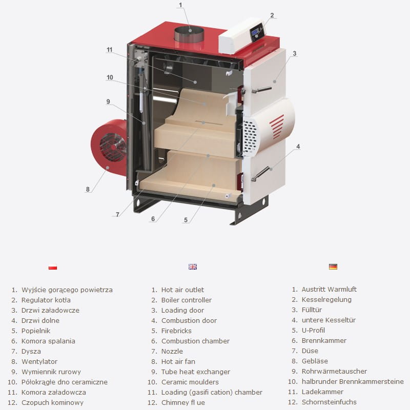 Wood gasifi cation hot air blowers are commonly used in industrial buildings or other facilities as: warehouses, workshops, hangars, tents or outbuildings.