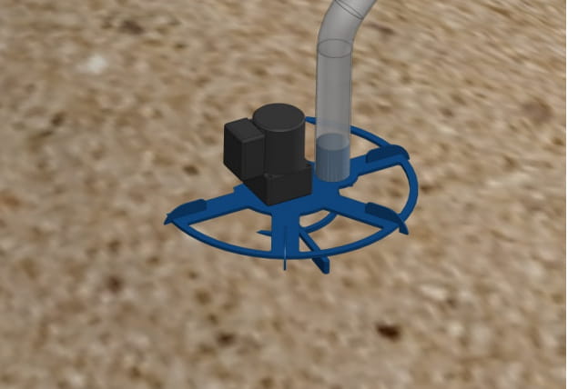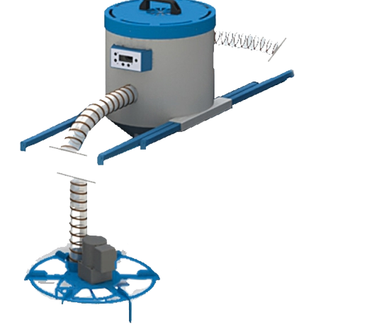 An integral component of the transporter is the pellet mixer included in the set, known as the "hamster". This device is used to loosen and gather pellets under the inlet hose of the transporter. For the hamster to operate correctly, it must be placed in the central location of the storage area on top of the pellet pile. The hamster must not be covered and must have a constant air supply.