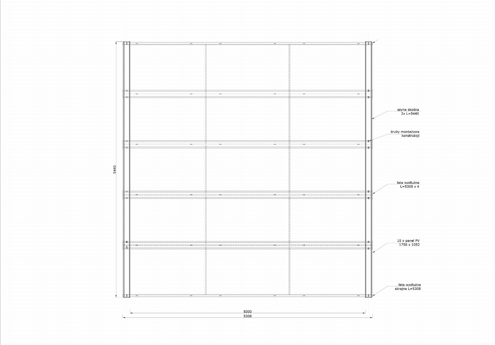 Carport samochodowy 2 stanowiska - ocynkowane