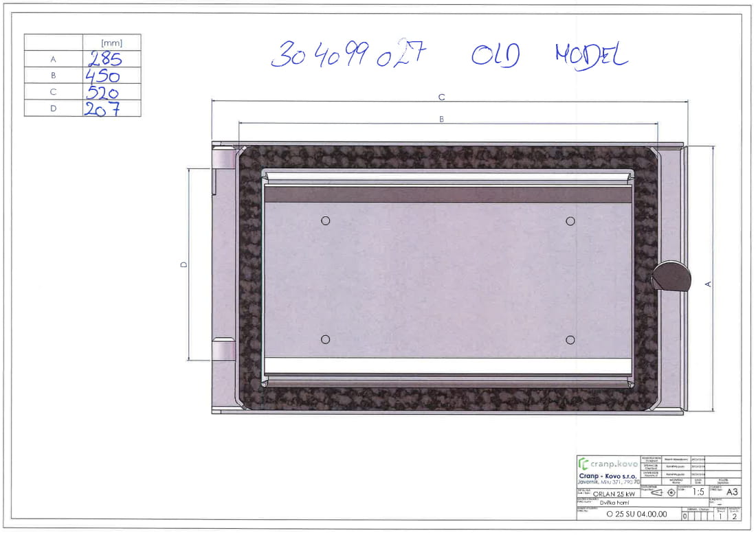 Drzwi górne kotła ORLAN 25 - 40 kW - stary typ do 2010 - 520 x 285 mm