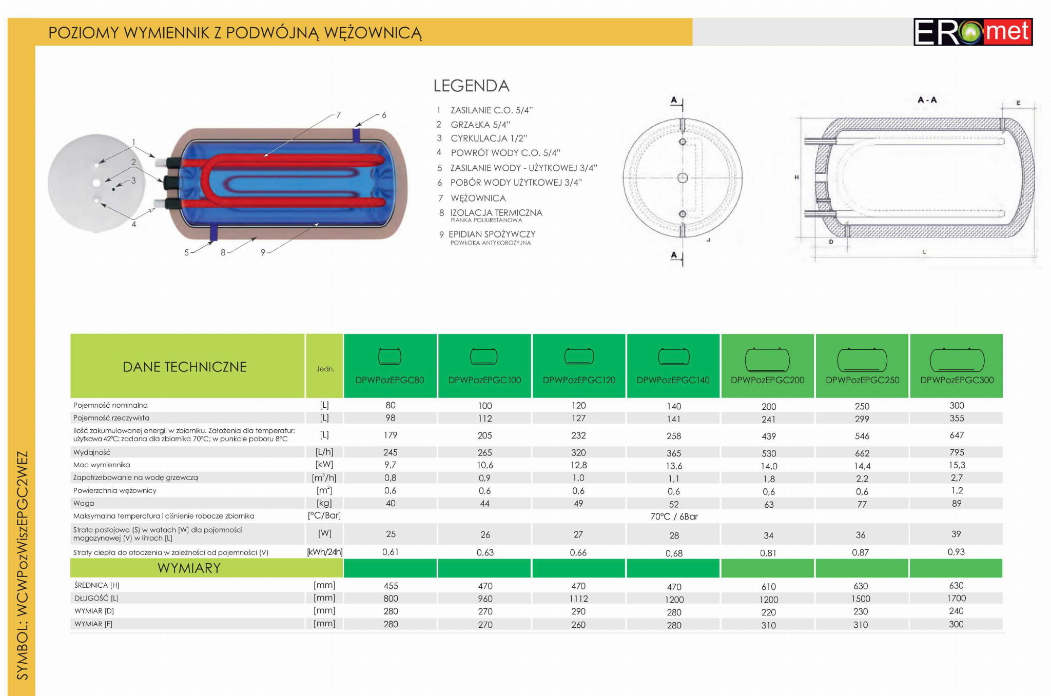 | Powierzchnia wężownicy | m2 | 0,42 | 0,48 | 0,54 | 0,58 | 0,70 | 0,70 | 0,70 |
