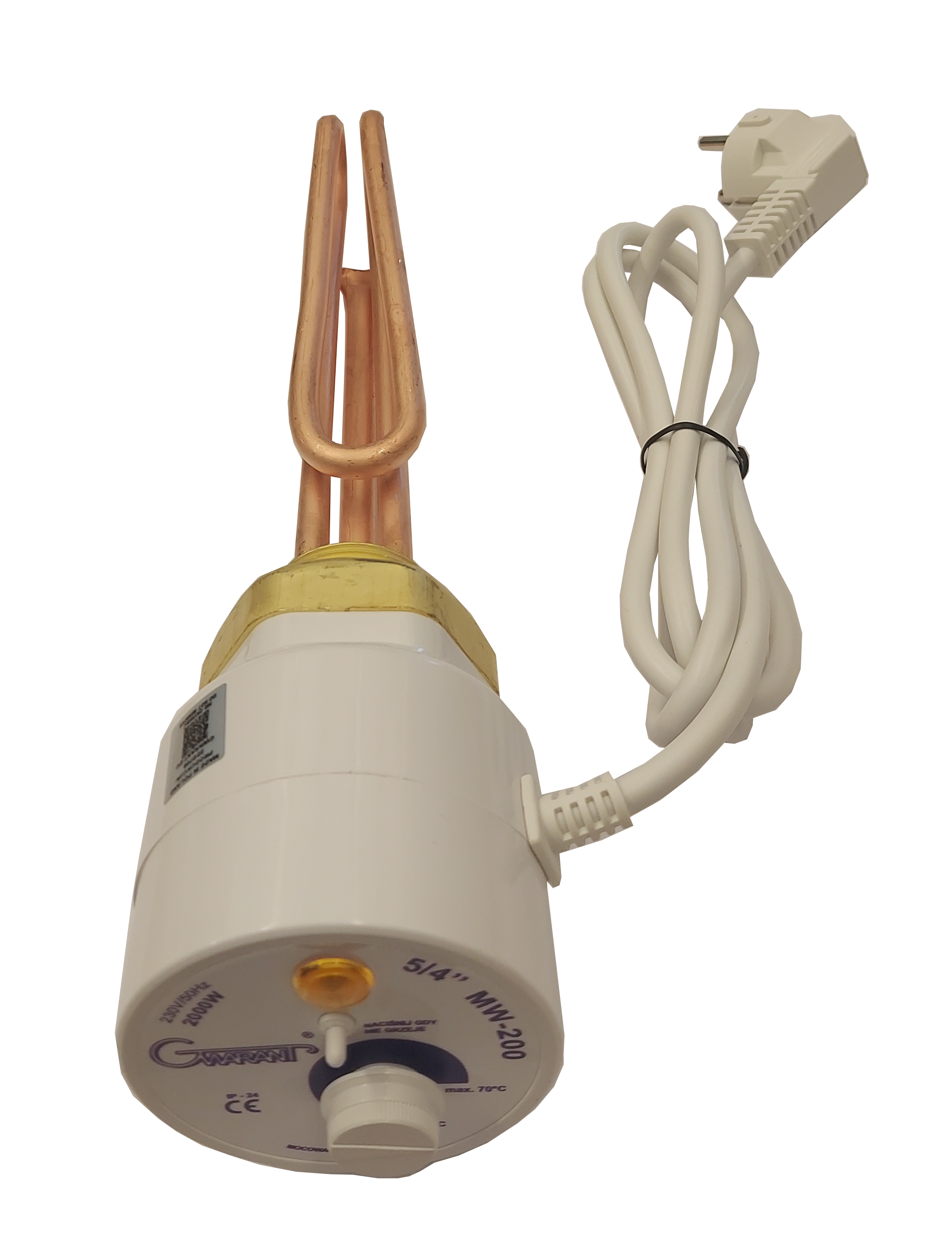Grzałka z termostatem GWARANT MW200 (krótka, zagięta) - 2000 W - 5/4