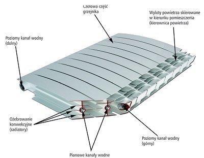 | Model | Odległość między osiami [ mm ] | Wysokość całkowita [ mm ] | Głębokość [ mm ] | Długość (1 żebro) [ mm ] | Szerokość [ mm ] | Pojemność wody (1 żebro) [ l ] | Masa (1 żebro) [ kg ] | Moc (1 żebro) [ W ] |