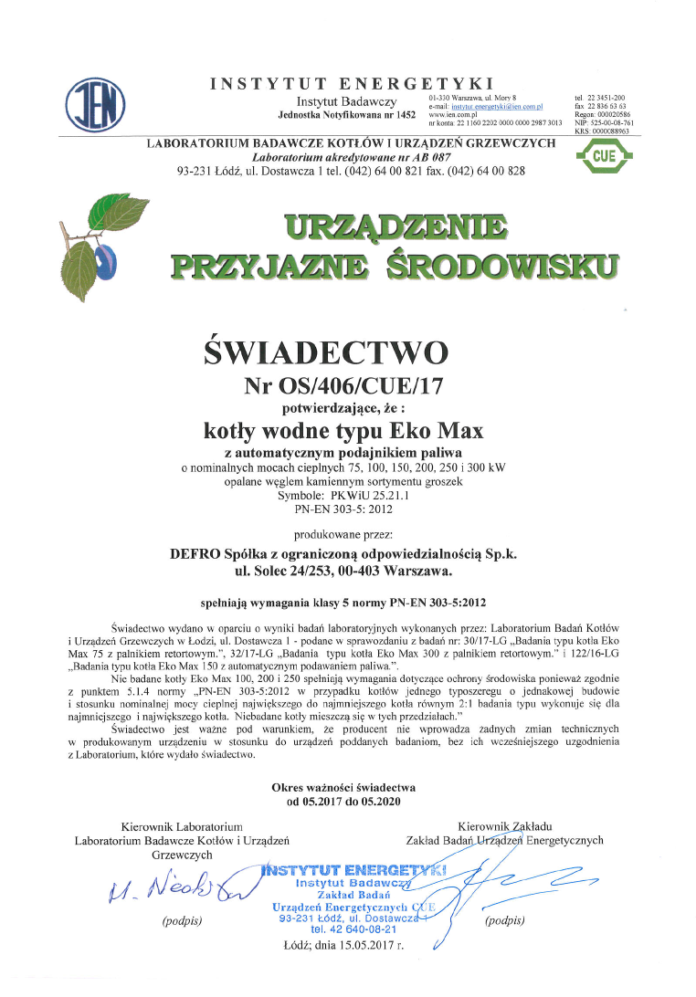 Klasa kotła (303-5:2012) 5