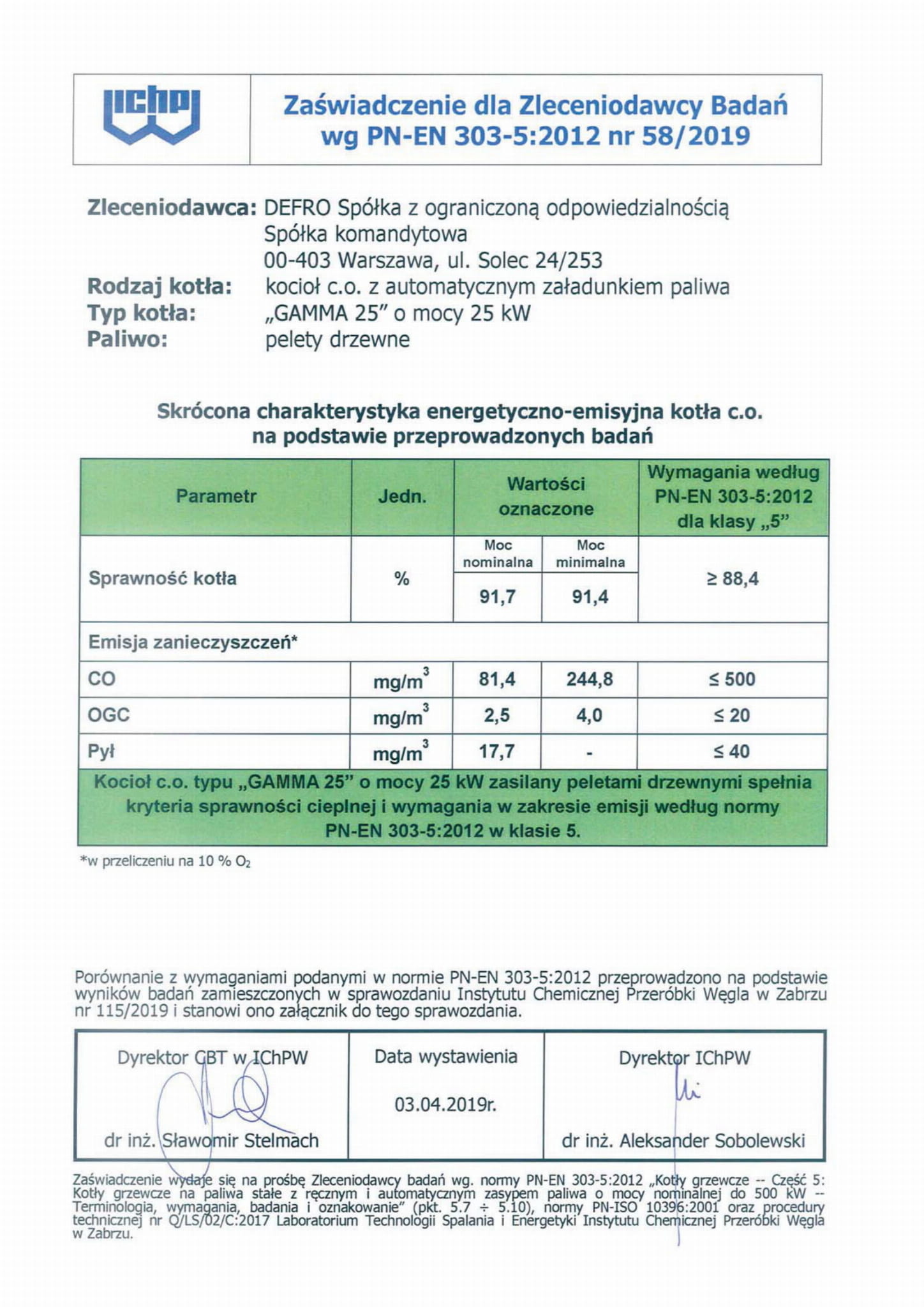 Sprawność kotła [%] 94,2 92,3 92,2 91,7 91,7 92,0