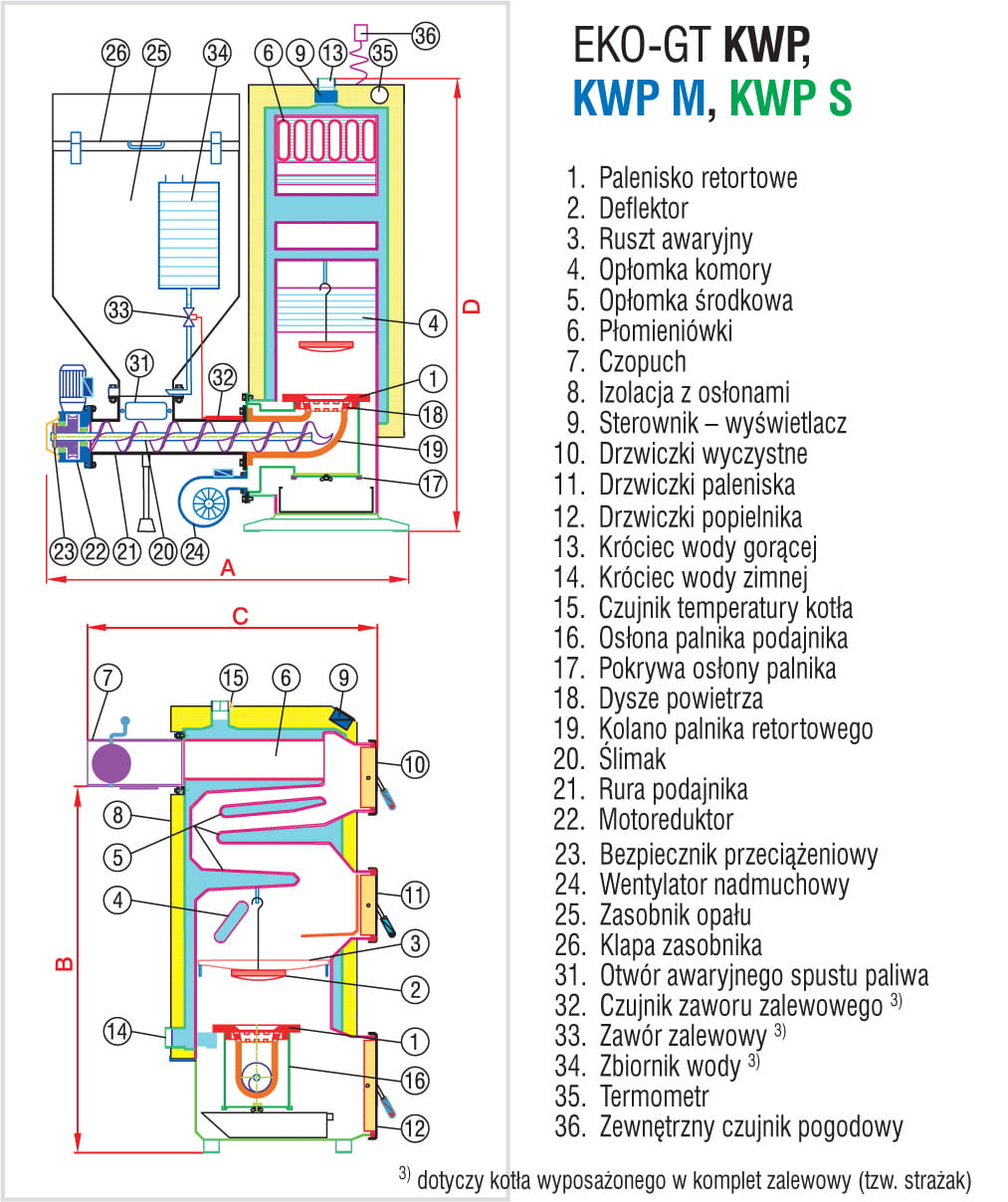 Kocioł Galmet EKO-GT KWP 17 M - 17 kW z podajnikiem do spalania miału oraz eko-groszku (z obrotową retortą)