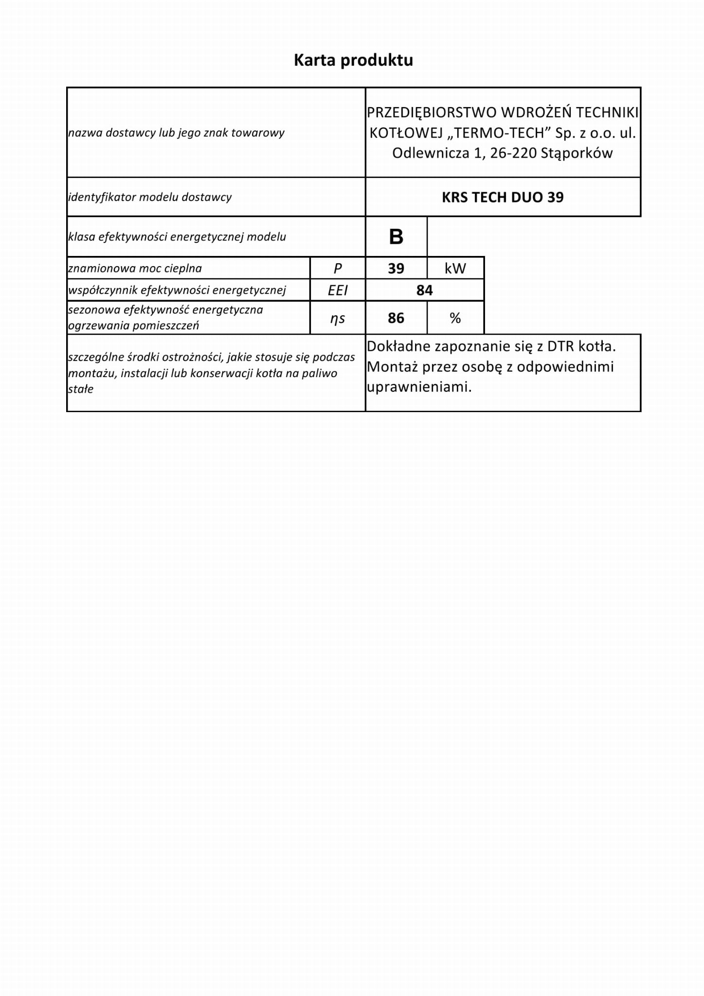 | Powierzchnia grzewcza kotła | 3.9 m² |