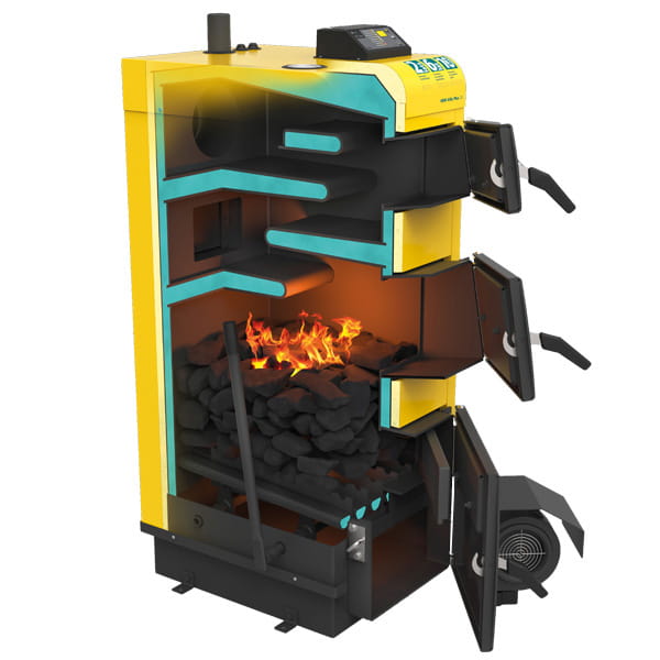 Drzwiczki umiejscowione pod skośnym kątem zostały poszerzone, dzięki temu ułatwiają zasyp opału. Natomiast dźwignia umieszczona z boku kotła pomaga w szybkim odpopielaniu rusztu.