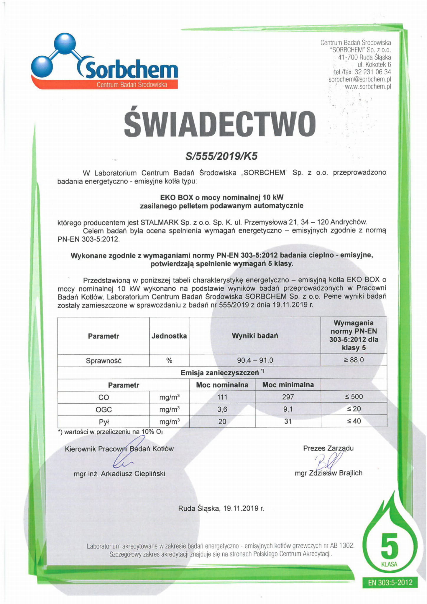 | Klasa kotła (303-5:2012) | 5 |
