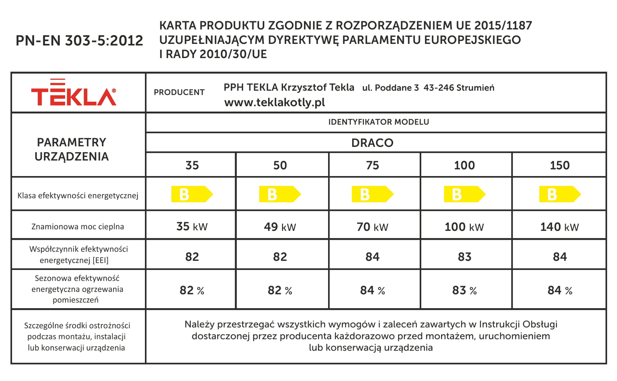 Klasa kotła wg PN-EN 303-5 |