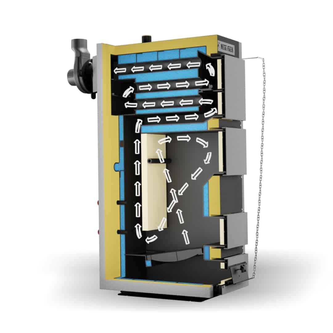 Jest odpowiedzialny za przeciwdziałanie wydostania się dymu z kotła oraz skutecznie wspomaga naturalny ciąg spalin w kotle.