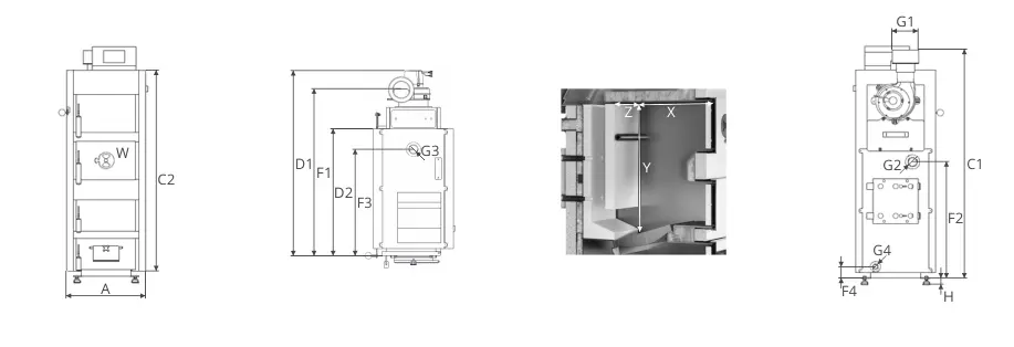 Konstrukcja kotła została zaprojektowana tak, aby wyjścia czopucha znalazło się z tyłu, oraz istniała możliwość wyprowadzenia czopucha bezpośrednio do komina.