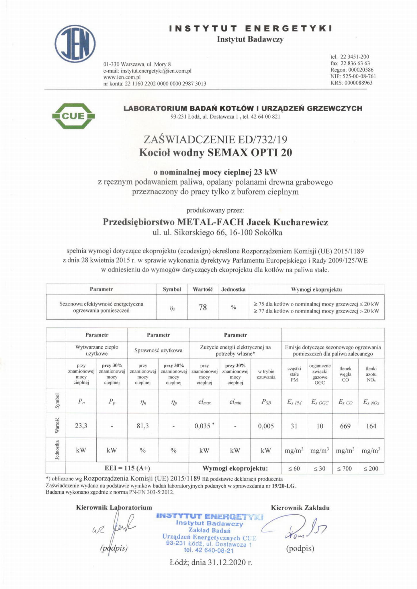 | Nominalna emisyjność cząstek stałych | [mg/m3] | 15 | 30 | 10 | 28 |