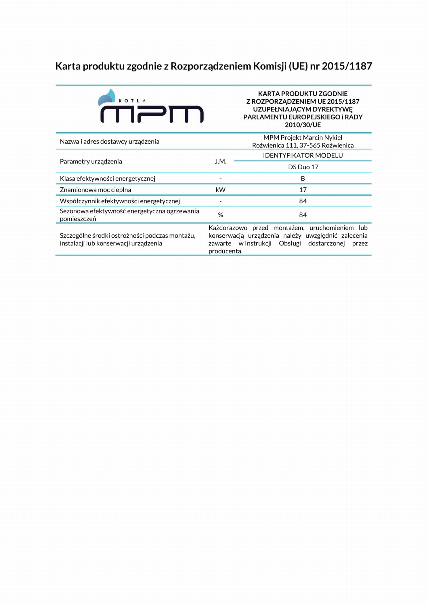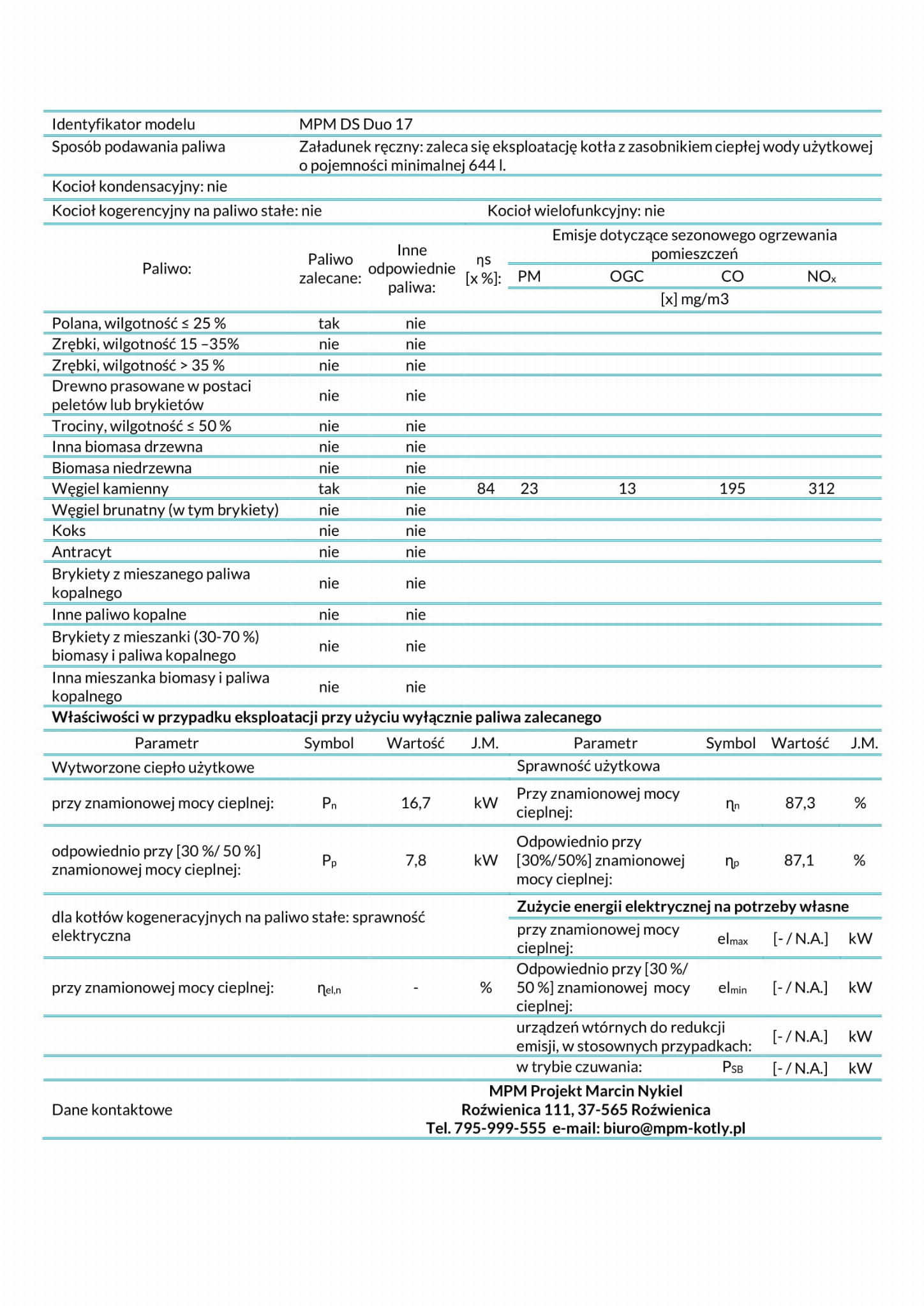| Moc kotła | 17 | 24 | kW |