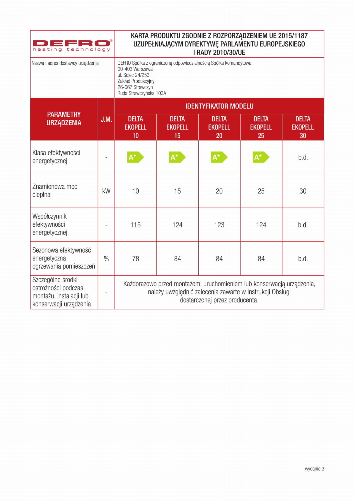 3 Zużycie paliwa dla pelletu o wartości opałowej 17000±300 kJ/kg.