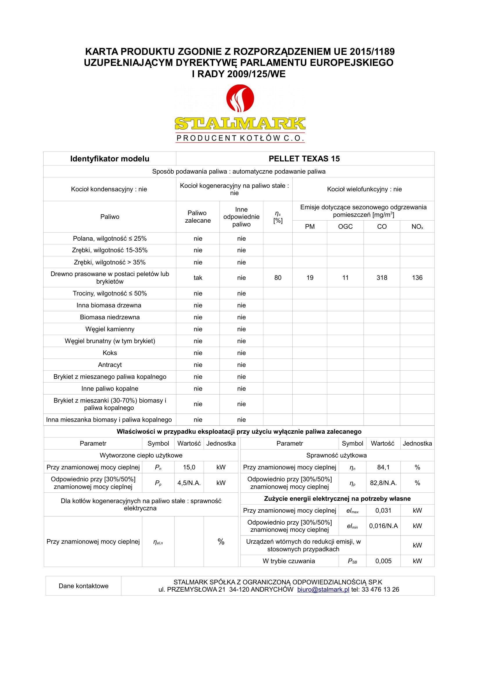 Kocioł na pellet STALMARK Pellet Texas 15 kW z podajnikiem po prawej stronie