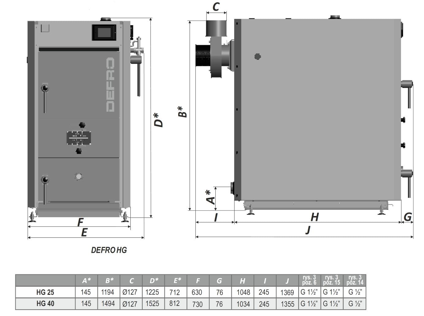 Kocioł Defro HG to kocioł, który posiada dwustopniową technikę spalania polegającą na zgazowaniu paliwa oraz pirolizie, występującej po spaleniu powstałych gazów.
