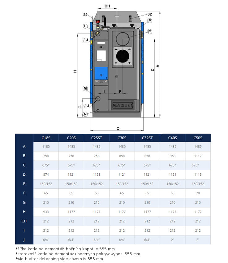 - Kocioł bez wymiennika rurowego – łatwiejsze czyszczenie (oprócz C50S)