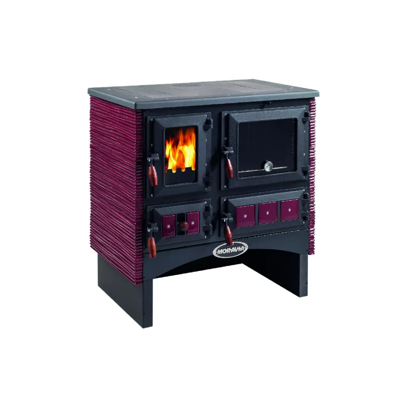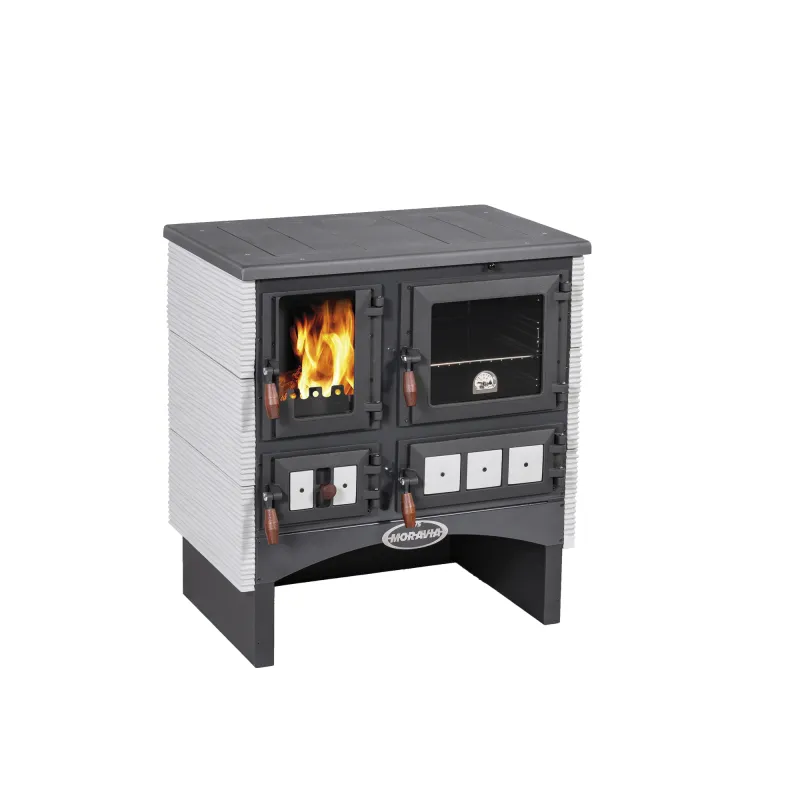 - Łączy zalety pieca kominkowego i kuchni — oprócz gotowania, pieczenia i ogrzewania, pozwala na podziwianie płomieni przez przeszklone drzwiczki paleniska.