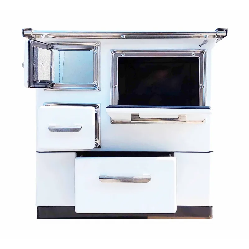 Kuchnia emaliowana MBS 3 EU umożliwia jednoczesne gotowanie, pieczenie i ogrzewanie niewielkiego pomieszczenia.