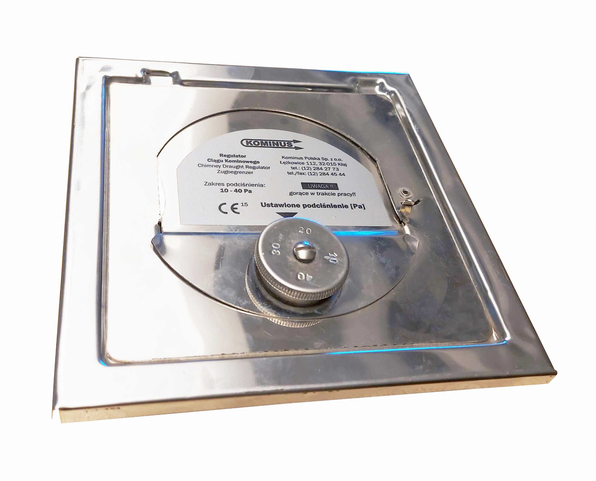 Regulator ciągu firmy Kominus montowany jest na czopuchu pieca z kominem, nad albo pod czopuchem. Jeżeli ciąg w kominie jest zbyt duży, klapa wahadła otwiera się i powietrze wypływa z kotłowni do komina. Podciśnienie w kotle pozostaje więc stałe i uzyskuje się w ten sposób optymalne spalanie. Pokrętło przy regulatorze służy do regulacji podciśnienia, przy którym dochodzi do otwarcia klapy. Regulacja odbywa się poprzez zmianę położenia odważnika umieszczonego pod pokrętłem, a tym samym przesunięcia środka ciężkości elementu tak, aby otwarcie klapy następowało przy zadanym podciśnieniu. Regulator ciągu może być zamocowany do rury czopucha oraz do przewodu umieszczonego w szachcie.