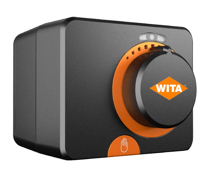 Siłownik elektryczny WITA SM W10 jest stosowany do napędzania obrotowych zaworów mieszających. Dzięki nowoczesnej konstrukcji i doskonałej jakości zastosowanych materiałów zapewnia niezawodną i cichą pracę. Montaż i demontaż do zaworu odbywa się bez narzędzi – wystarczy nacisnąć przycisk. Sprzęgło do przestawiania ręcznego aktywuje się i dezaktywuje po naciśnięciu przycisku odblokowującego. Praca siłownika jest sygnalizowana przez diody LED. Następca modelu SM 4.6 i SM 44.6.