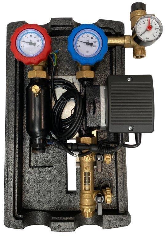 Dzięki podwójnej grupie pompowej użytkownik ma możliwość kontrolowania temperatur czynnika grzewczego zarówno na zasilaniu jak i jego powrocie.