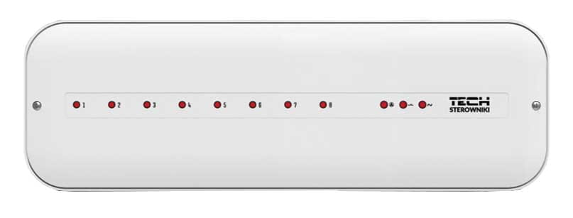 Możliwość obsługi max. 22 siłowników termostatycznych przy pomocy 8 regulatorów pokojowych: