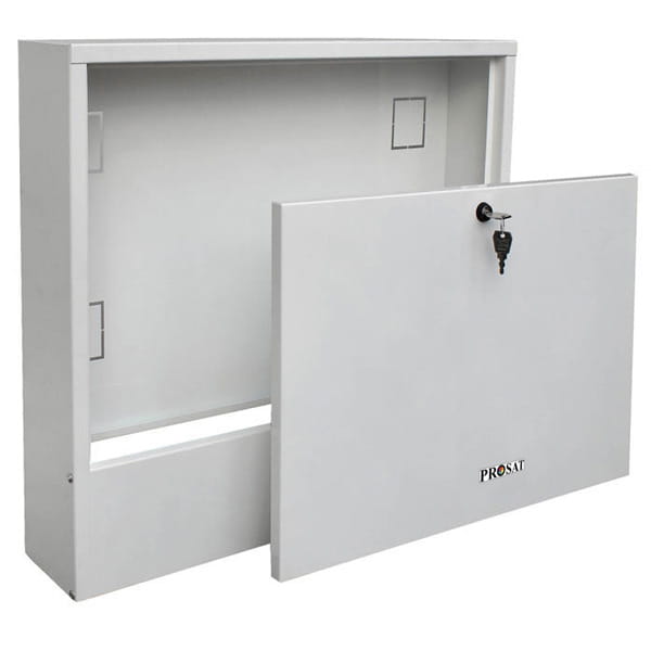 Szafka natynkowa do montażu rozdzielaczy obwodów grzewczych. Wykonana w całości z blachy stalowej ocynkowanej o grubości 0,8mm, dodatkowo malowana proszkowo. Front zdejmowany w całości, co umożliwia wygodny montaż rozdzielacza. Drzwiczki zamykane na zamek cylindryczny.