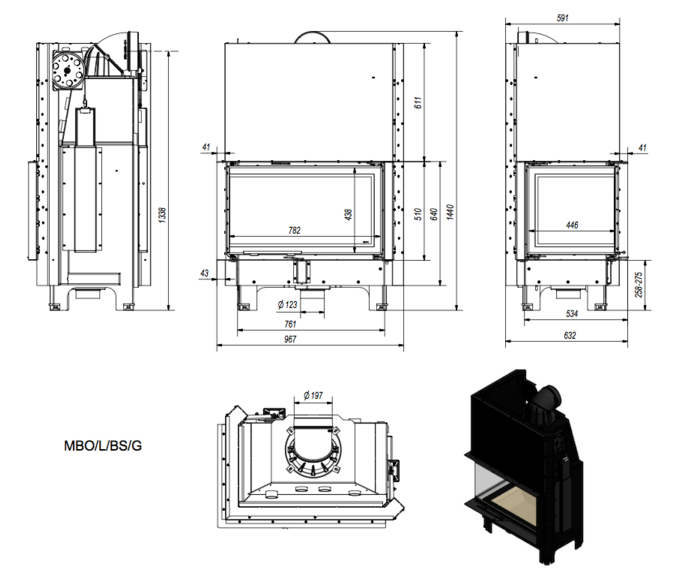 Wkład kominkowy Kratki MBO 15 lewy BimSchV2 (szyby łączone bez szprosa)